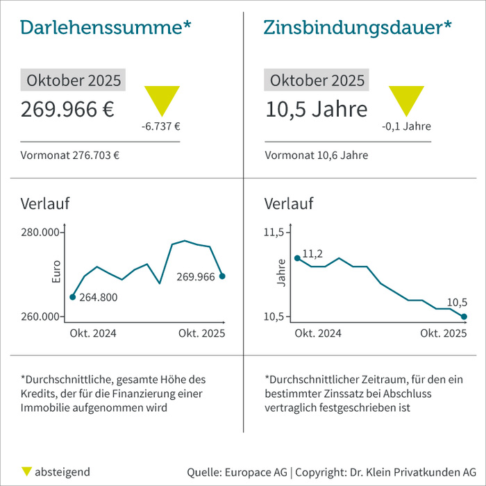 - Durchschnittliche Darlehenssumme: © Europace AG, Dr. Klein Privatkunden AG